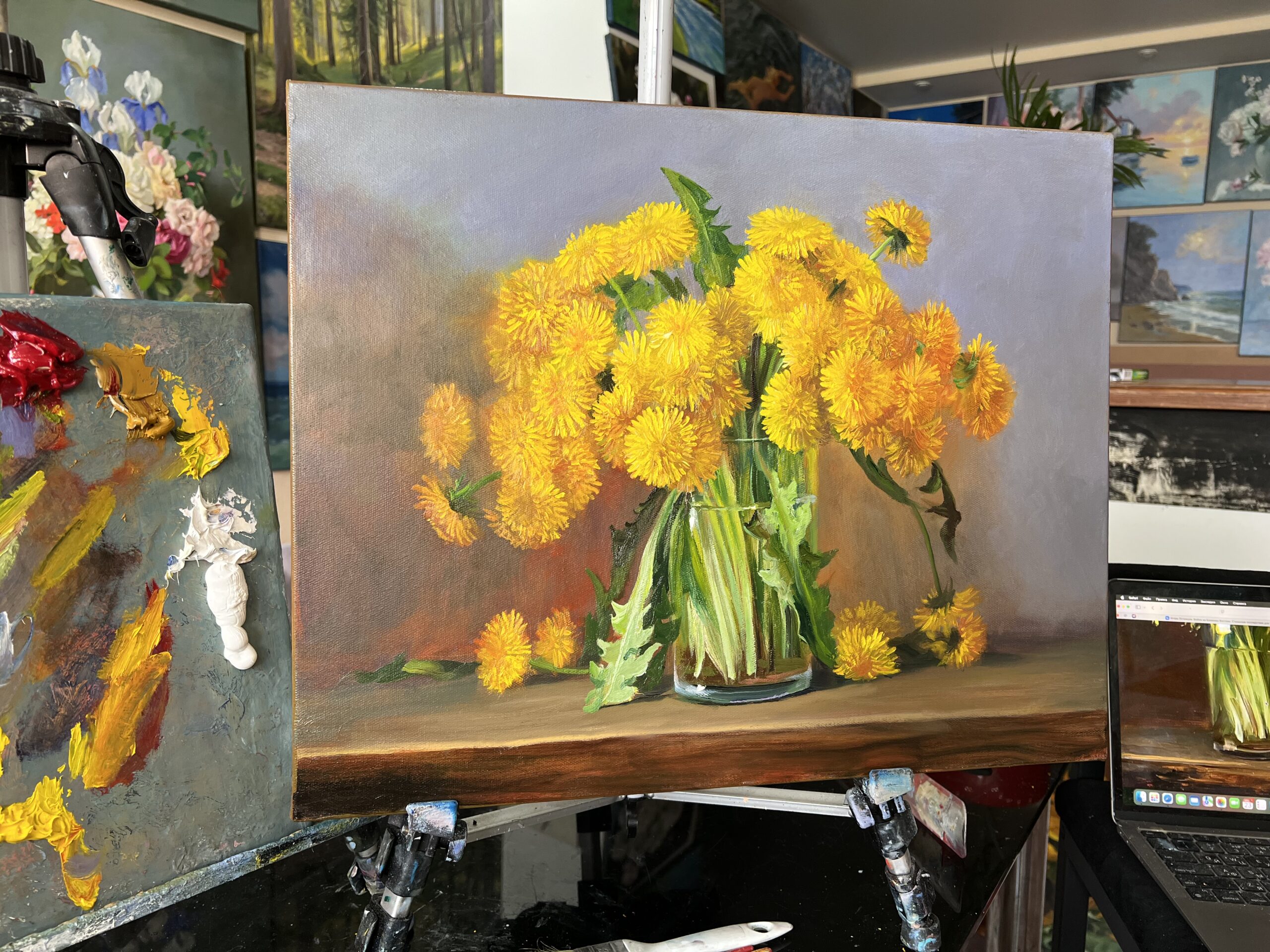– Рекомендуемые материалы, такие как кисти Kolos Milk , холсты и фирменные масляные краски под брендом «И.Сахаров» (нарядная розовая, нарядная оранжевая, нарядная желтая и нарядная зеленая) краски, можно приобрести у Юлии.